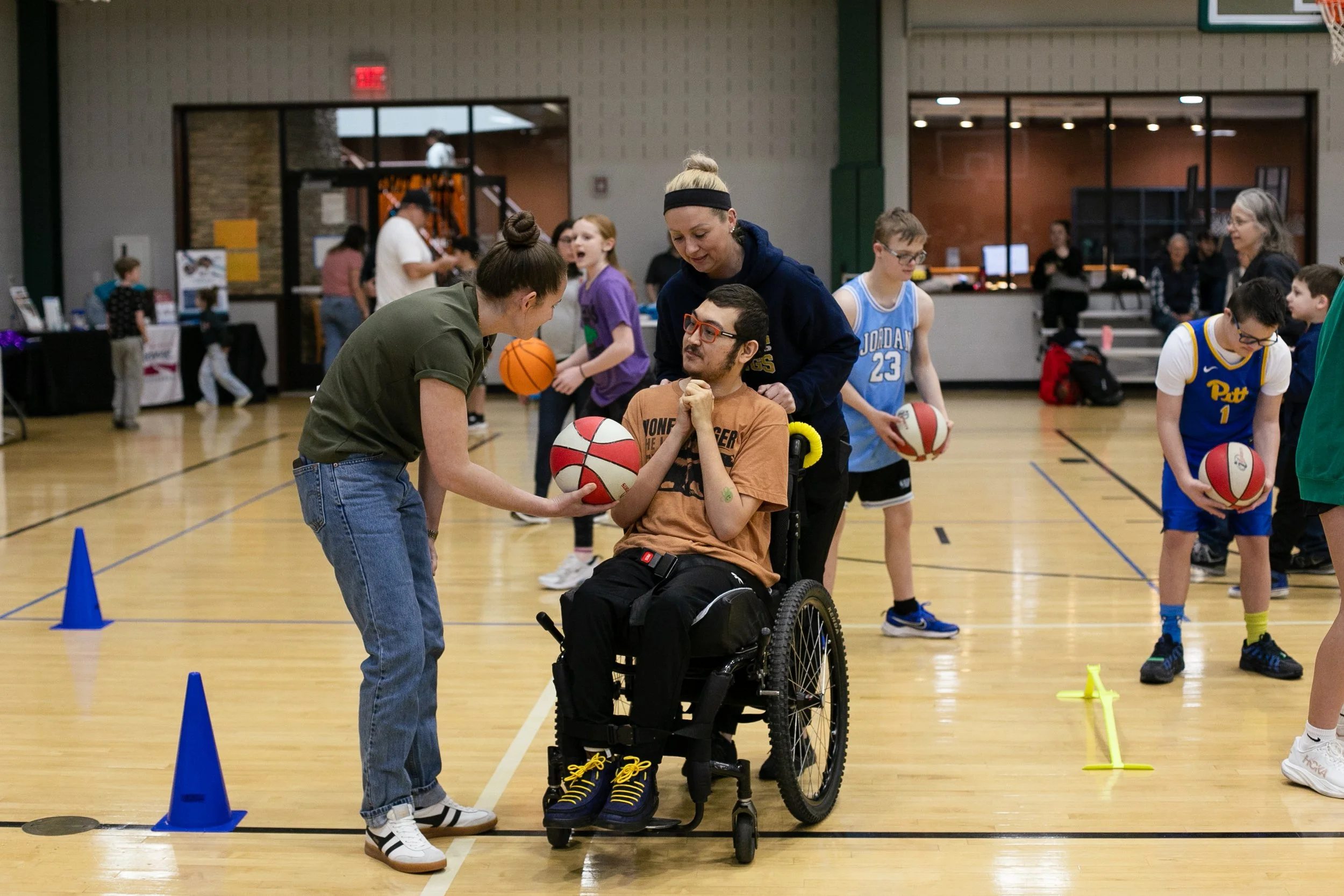 Safe, inclusive, basketball with modifications for all ability levels.